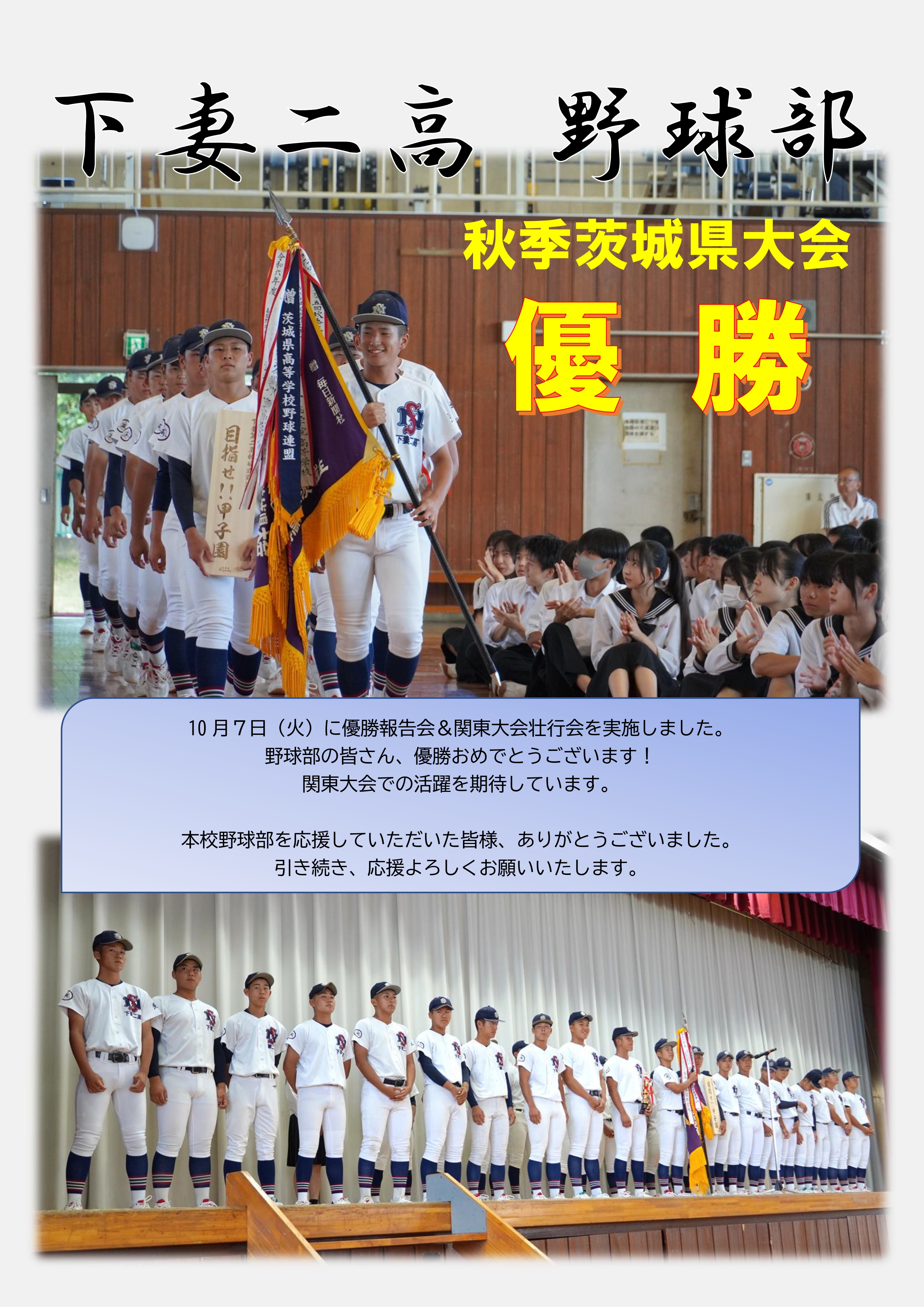 本校が甲子園に出場した際に下妻市民の皆様をはじめ多くの方々からご寄付をいただきました。その残金を「全国高等学校野球大会出場準備金」として野球部関係の支出に使用させていただくこととなっております。