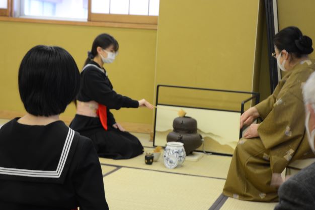 お稽古の後は,和菓子を食べ,お抹茶を飲む時間を作っています。